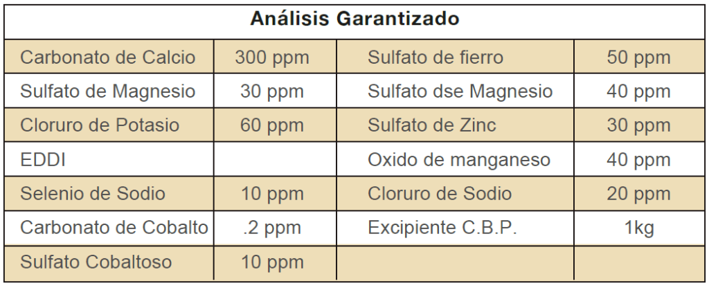 Producto en forma de block compactado de sales minerales enconcetración apta para ganado ovino. Ayuda a mejorar la productividad y reproductividad de los ovinos. Aumenta la calidad de lana, ganancia de peso, mejora la conversión alimenticia.