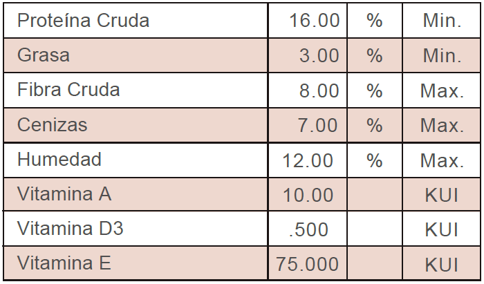 elaborada con granos, pasturas y minerales, favorece un óptimo desarrollo corporal y de la cornamenta.